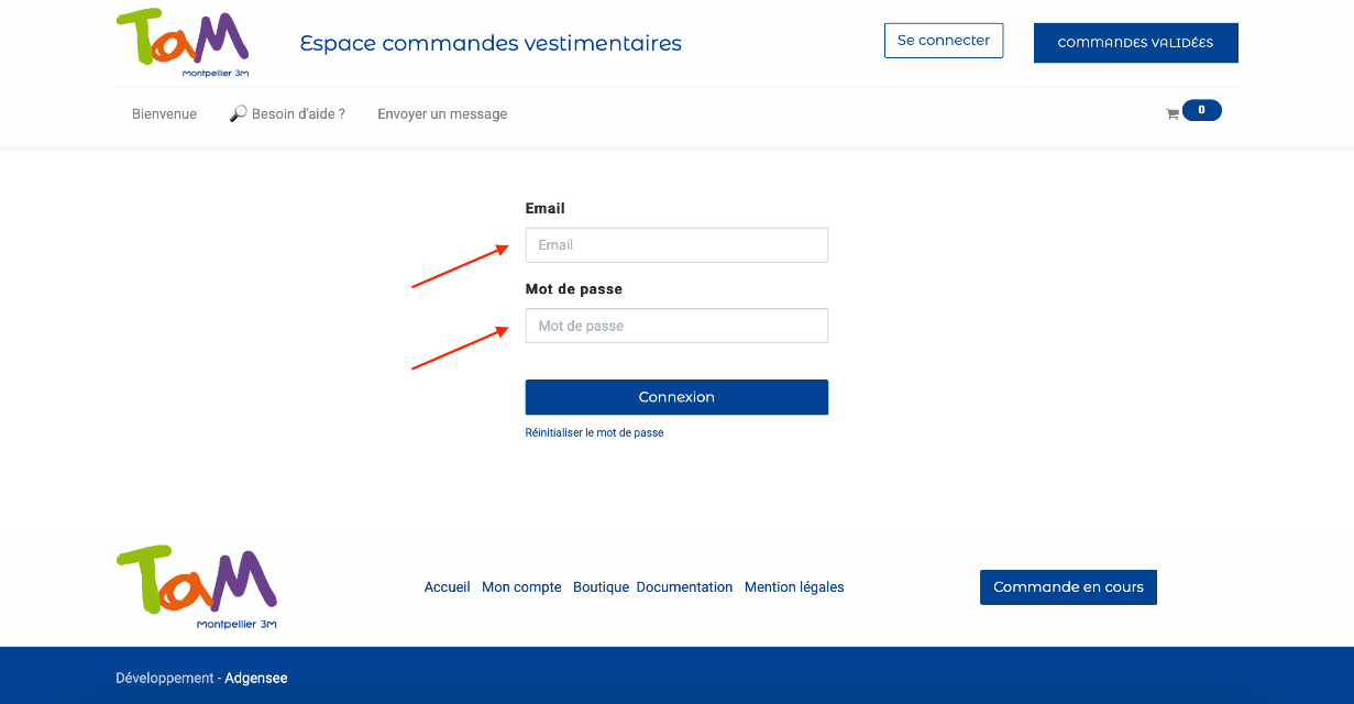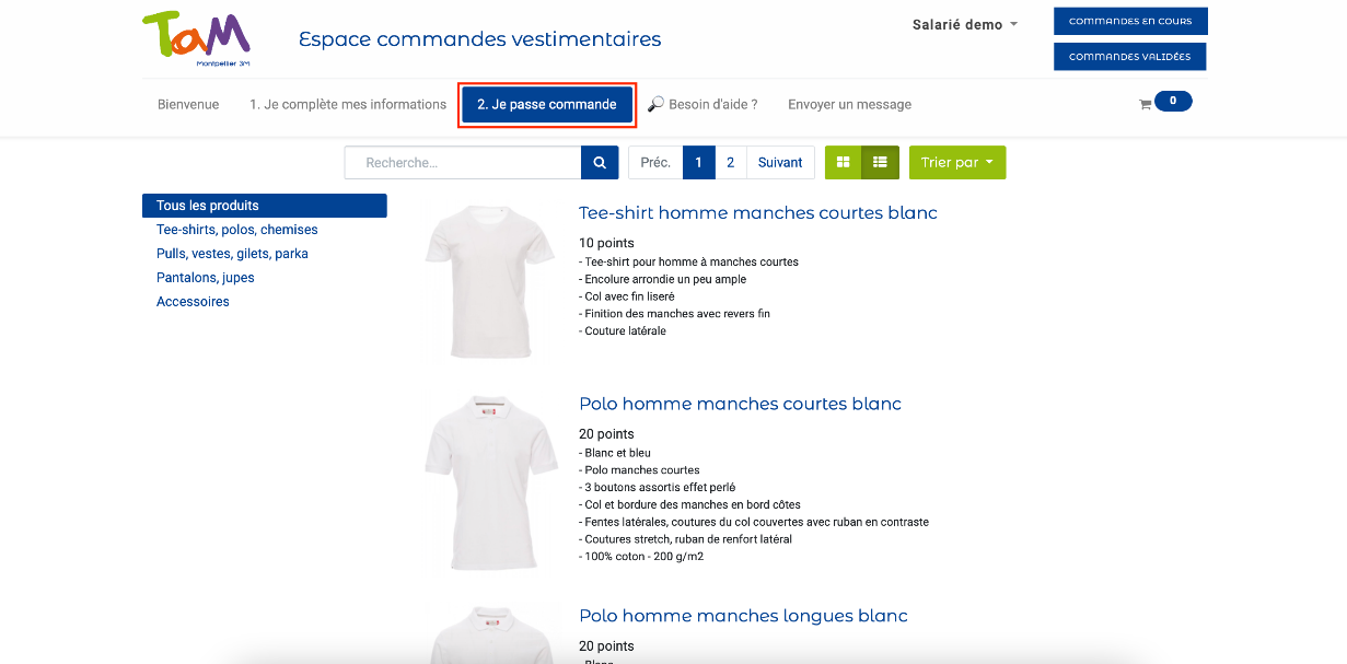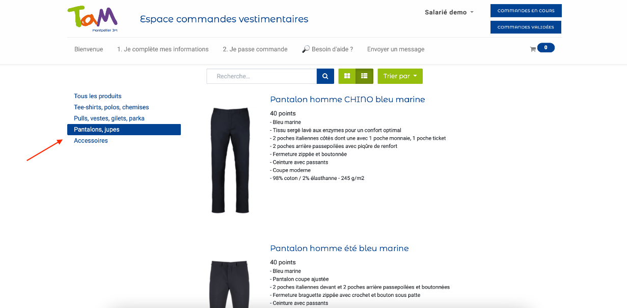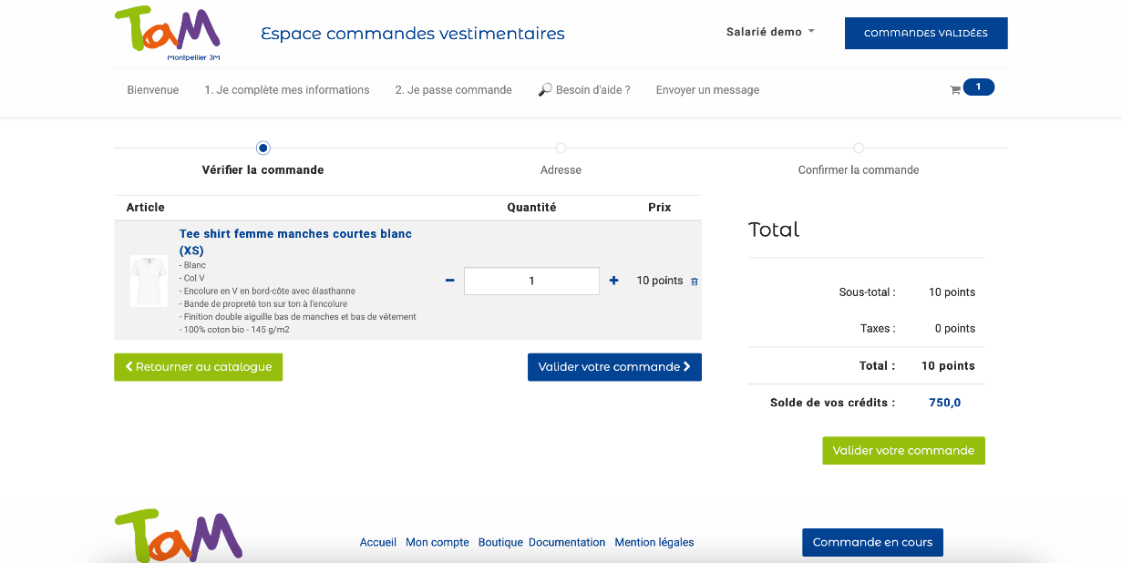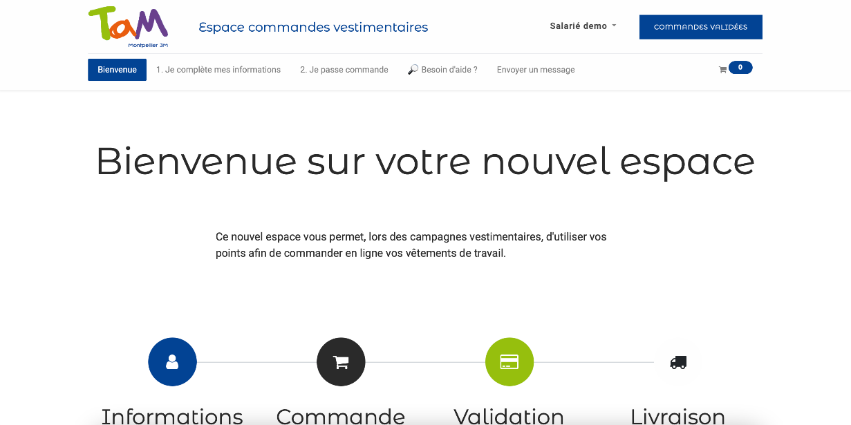 Suite à votre connexion vous allez être dirigé sur cette page. C'est sur ce site internet que vous allez pouvoir passer commande de votre dotation vêtement.