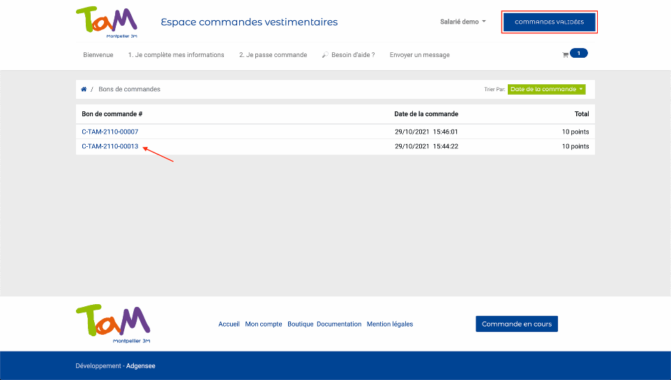 Pour modifier ou annuler une commande, il vous faut aller dans les commandes validées, et sélectionner la commande en question.