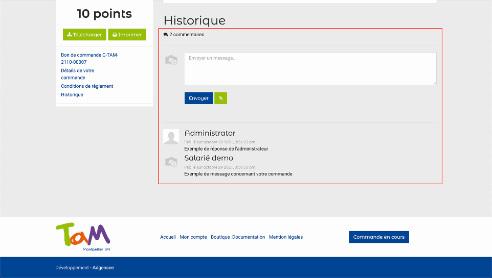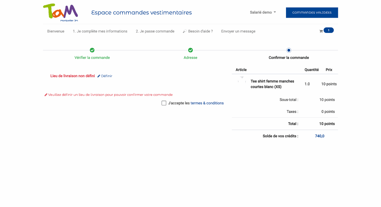 Un message d'erreur s'affiche si vos informations ne sont pas renseignées ou si vous n'avez pas assez de points pour la commande demandée.