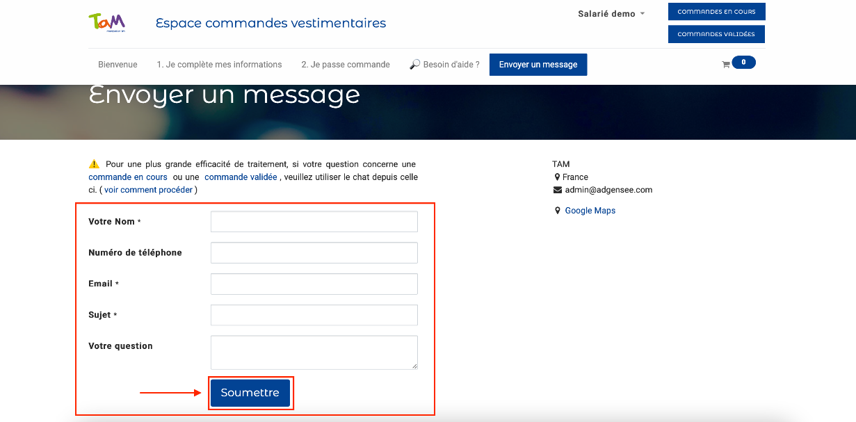 Il vous faut compléter tous les champs comme mentionné ci-contre et appuyer sur le bouton "soumettre".